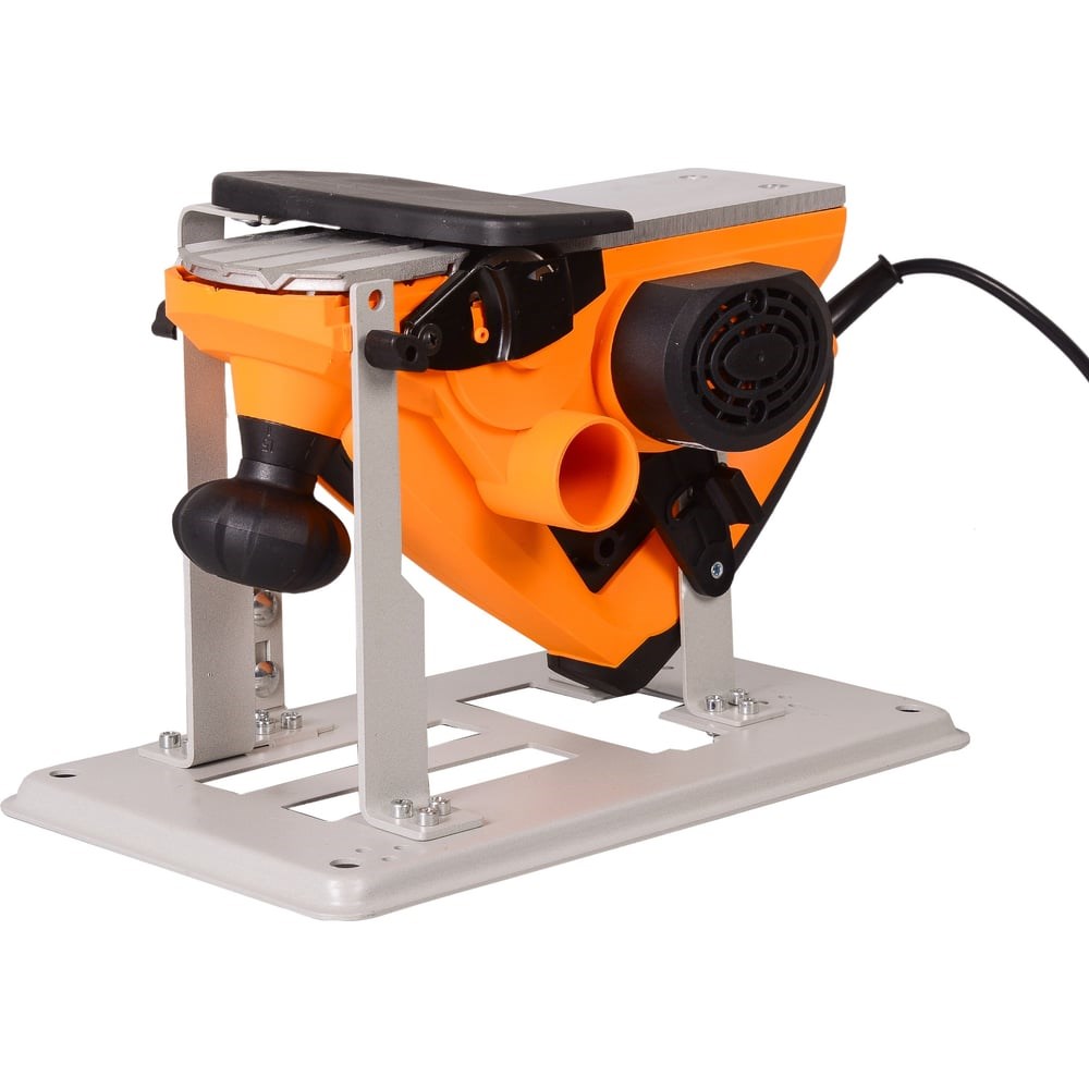 Электрический рубанок модели Вихрь Р-82СТ – это ручной электроинструмент, который применяется для строгания древесины. Используется в быту и для промышленных целей. Подходит для строгания плоских поверхностей и для обработки всех видов заготовок (досок, брусьев и пр.).В качестве режущего элемента используются металлические ножи, которые считаются расходным материалом. Их главная особенность заключается в том, что они имеют двухстороннюю заточку. Если ножи затупились, их можно перевернуть на другую сторону и продолжить работу. Предусмотрена возможность регулировки заглубления с шагом 0,25 мм. Ширина строгания составляет 82 мм, глубина доходит до 3 мм.Электрический рубанок данной модели комплектуется станиной. Она позволяет закрепить инструмент на столе или другой поверхности и использовать в качестве станка. Дополнительное крепление значительно упрощает работу с мелкими заготовками. Выключатель с защитой от случайного включения обеспечивает безопасность во время работы. Корпус рубанка Вихрь Р-82СТ имеет вентиляционные отверстия, благодаря которым охлаждается двигатель.