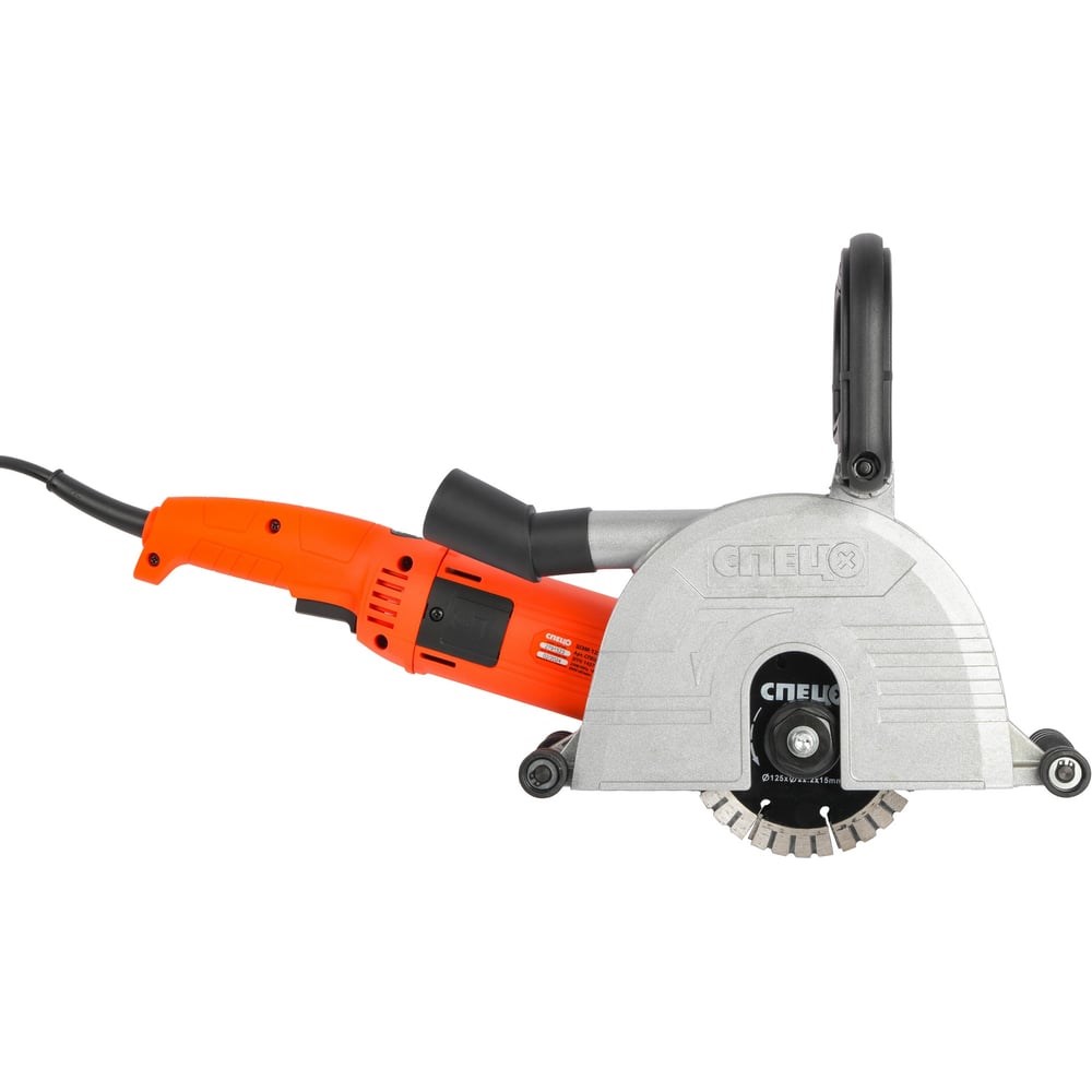 Электрический штроборез СПЕЦ ШЭМ-125/1800,1800 Вт, 6000 об/мин, 2 диска 125 мм, штроба 40x35 мм, подкл.пылесоса, цветной короб СПЕЦ-4123