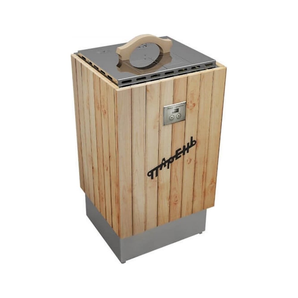 Электрический запарник для веника VVD Парень 0-1.5 кВт, 220 В, светлое дерево 9975 предназначен для единовременного запаривания и хранения в рабочем состоянии в течении всего сеанса парения от одного до четырех веников единовременно. При снятой крышке «Парень» может с успехом использоваться и как фитозапарное устройство при размещении в нем фитозапарного материала и как увлажнитель воздуха при «сухом» микроклимате в парильном помещении. Оборудован автоматической управляемой системой формирования внутреннего микроклимата в зависимости от количества, качества размещенного в нем материла и желания пользователя. Предусмотрена система частичного внутреннего, обратного конденсирования излишков генерируемого пара, что значительно увеличивает время непрерывной работы запарника на одной "заправке". Конструктивное исполнение устройства, применение термоизолирующих и пароизолирующих материалов - дерево, двойная крышка, силиконовая прокладка гарантируют травмобезопасность при прикосновении к металлическим частям. Дополнительные характеристики: Номинальная потребляемая мощность: 0-1.5 кВт; Рекомендуемое количество одновременно запариваемых веников: 1-4 шт.; Рекомендуемый номинальный ток защитного автомата: 10 А; Производительность (по расходу воды): 0-3 л/ч; Степени защиты: IPХ4.