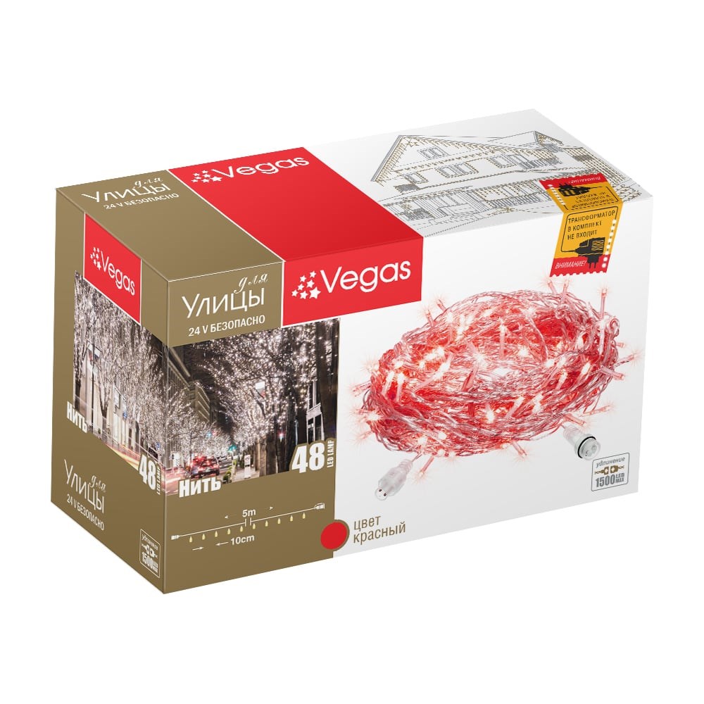 VEGAS 24V Электрогирлянда-конструктор "Нить" 48 красных LED ламп, прозрачный провод, 5 м 55003 для создания декоративной и праздничной иллюминации.Размер гирлянды 5 м, количество светодиодов 48.Цвет свечения красный, режим свечения статичный, цвет провода прозрачный.Степень защиты IP 44. Мощность 0,96 W. Температурный диапазон использования от -30 до +50 °С. Есть возможность последовательного соединения до 1 500 LED. Срок службы 25 000 часов.Трансформатор не входит в комплект! Приобретается отдельно.
