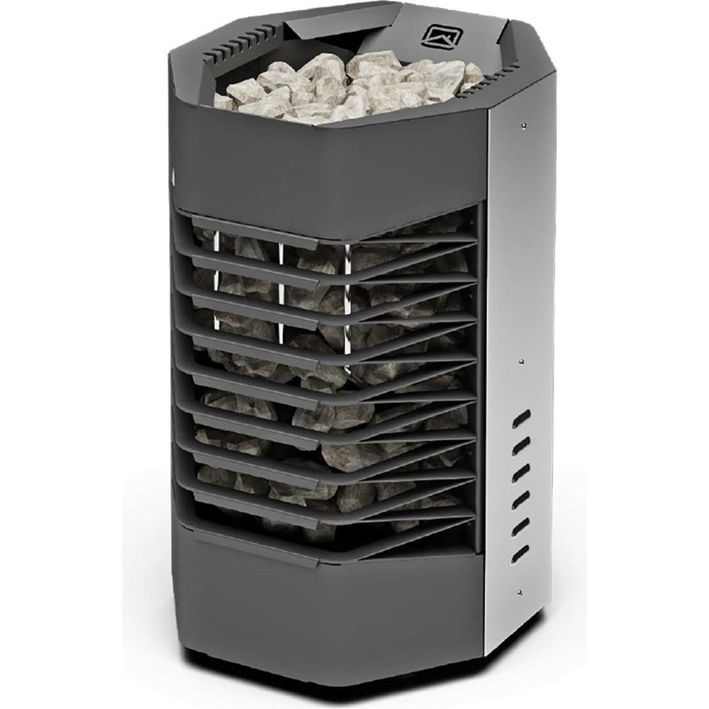 Напольная электрокаменка-сетка. Конструкция - модульная. Все элементы конструкции выполнены из нержавеющей стали. Каждый модуль конструкции может быть легко демонтирована для обслуживания. ТЭНы, расположенные в зоне загрузки, находятся в непосредственном контакте с камнями. Вся энергия, выделяемая ТЭНами идет на нагрев камней и парильного помещения. Нагрев сауны до рекомендуемой температуры парения (60-80°С) происходит за 40-60 мин (в зависимости от первоначальной температуры в помещении и качестве изоляции). Повышение влажности воздуха в парной достигается путем единовременной подачи воды на раскаленные камни. Внимание! Пульт управления в комплект не входит.