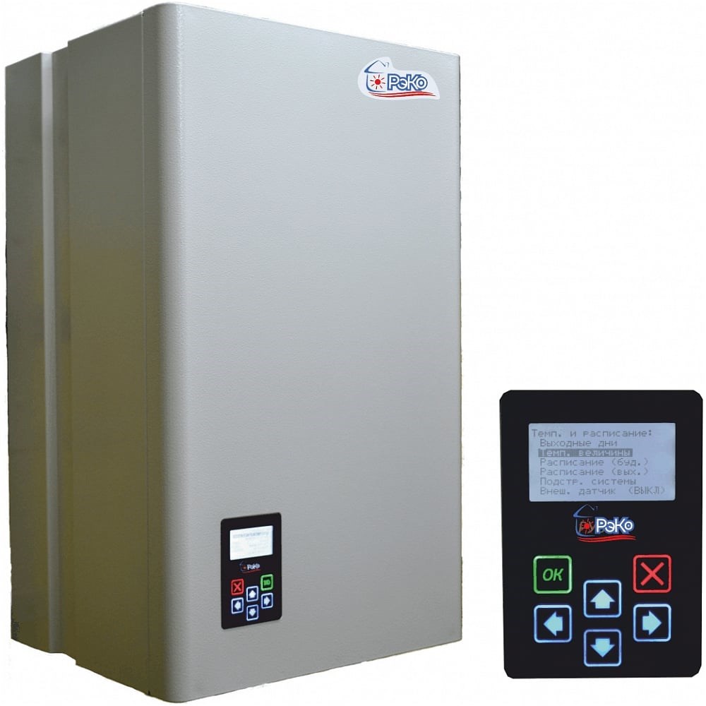 Электрокотел РУСНИТ РЭКО-12ПМ, 12 кВт 380В 46012121002 представляет из себя отопительный агрегат, укомплектованный циркуляционным насосом (Grundfos - Германия), экспанзоматом (СIMM - ИТАЛИЯ), предохранительным клапаном (KRAMER - Италия) и воздухоотводчиком (VALTEC - Италия). Управление котлом осуществляется за счет функциональной панели с ЖК-дисплеем, имеющей необходимые индикаторы (информация о текущих температурах, режимах работы и неисправностях).