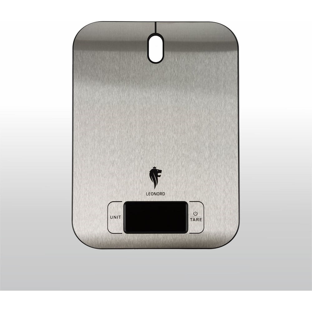 Кухонные электронные весы Leonord LE-1705 105021 обладают следующими характеристиками:Металлическая поверхность 16х22см.LCD дисплей с подсветкой.Максимальная нагрузка 5 кг.Выбор единицы измерения: грамм, килограмм, фунт, унция.Цена деления 1 грамм.Функция "Тара".Прорезиненные ножки.Удобная петля для подвешивания.Автоотключение.Индикатор перегрузки и заряда батареи.Питание от 2хААА (входят в комплект).Гарантийный срок: 24 месяца