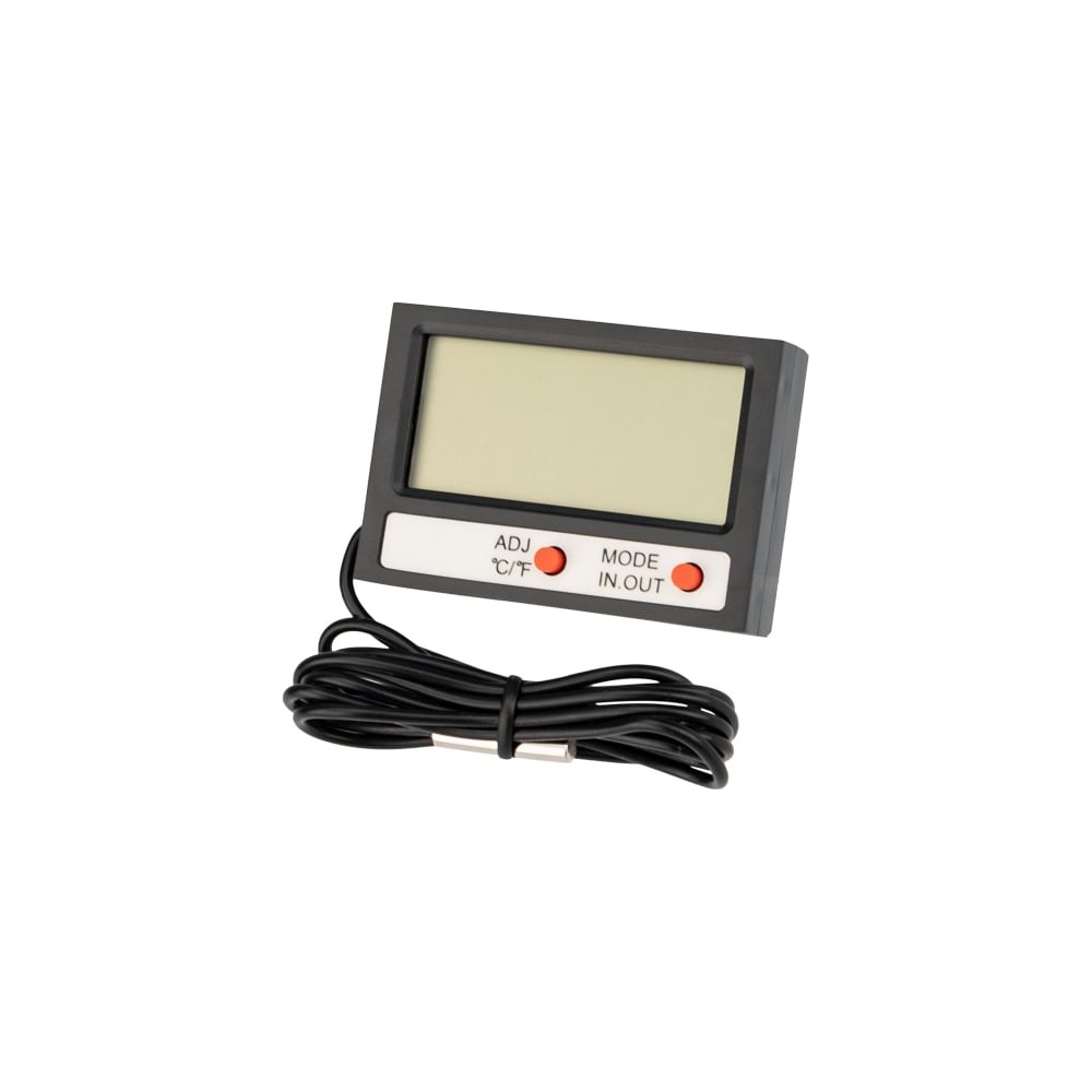 Электронный комнатно-уличный термометр REXANT предназначен для измерения температуры в помещении и на улице (с помощью дистанционного датчика). Оснащен часами. Имеет настольную подставку и отверстие для крепежа на стену. Прибор экономичен и прост в эксплуатации, имеет небольшие размеры, простой дизайн и большой дисплей. Отличается точными показаниями, простым и удобным управлением. Оптимально подходит для применения как в домашних условиях, так и на производстве. Дополнительные характеристики:Единицы измерения температуры: С, FДва формата отображения времени на часах: 12 ч/24 чДиапазон рабочих температур термометра в помещении: –10...+50 С (+14...+12 F )Диапазон рабочих температур внешнего датчика: –50...+70 С (–58...+158 F)Длина провода выносного датчика: 1 м