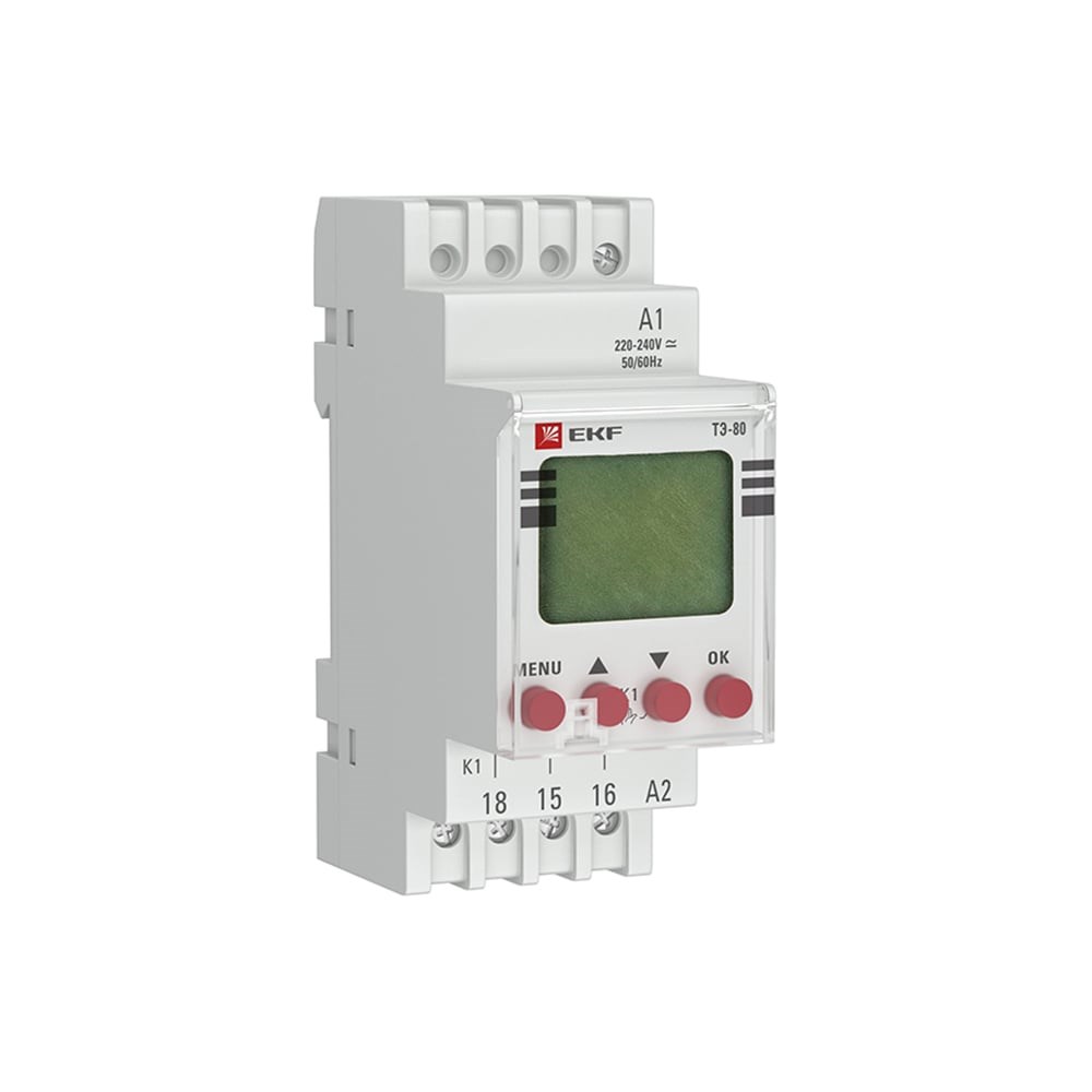 Таймеры электронные с ЖК-дисплеем серий ТЭ-80 EKF PROxima представляют собой реле, момент срабатывания которого (включения/отключения) задается установкой необходимого времени суток и дня недели. Таймеры имеют в своем составе часы, что позволяет отслеживать текущее время. К тому же таймеры снабжены функцией импульс, что позволяет формировать импульс длиной 1–99 секунд. Данную функцию, к примеру, можно использовать для подачи школьных звонков. Изделие соответствует ГОСТ IEC 60730-2-7-2011.Преимущества:Задание до 80 программИнформативный дисплейЧасы реального времениЗащитная крышка дисплея и кнопок с возможностью опломбировкиВозможность регулировки предустановки интервала времениВозможность ручного управления релеВстроенное перекидное реле С/О с номинальным током 16АНапряжение питания 230 V АС