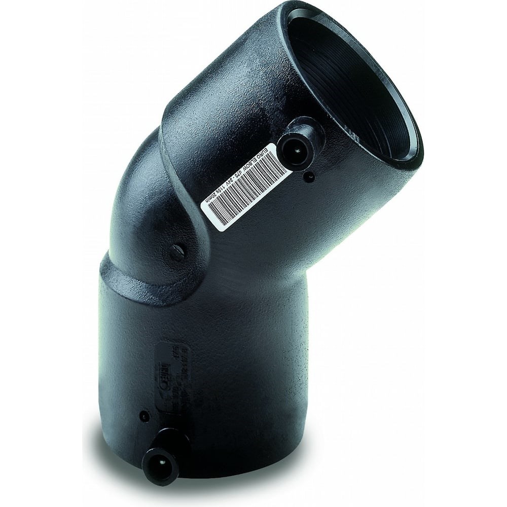 Отвод ПЭ EUROSTANDARD 45 градусов электросварной d 63 SDR11 2116160063 применяется при монтаже полиэтиленовых труб для водоснабжения и газоснабжения в тех случаях, когда необходимо изменить направление трубопровода и потока рабочей среды. Использование отвода позволяет выполнить монтаж герметичного и надежного соединения. Он монтируется при помощи электромуфтового аппарата. Благодаря наличию штрих-кода на поверхности электросварного отвода существенно сокращается время монтажа, так как в нем содержится информация о параметрах сварки, напряжении и силе тока.