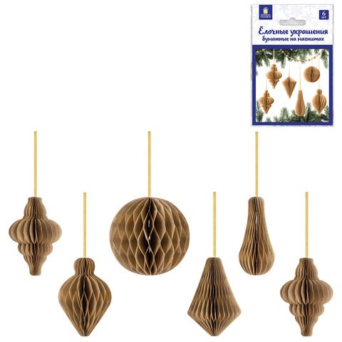 Елочные украшения из бумаги, НАБОР 6 шт., цвет крафт, ЗОЛОТАЯ СКАЗКА, 592539