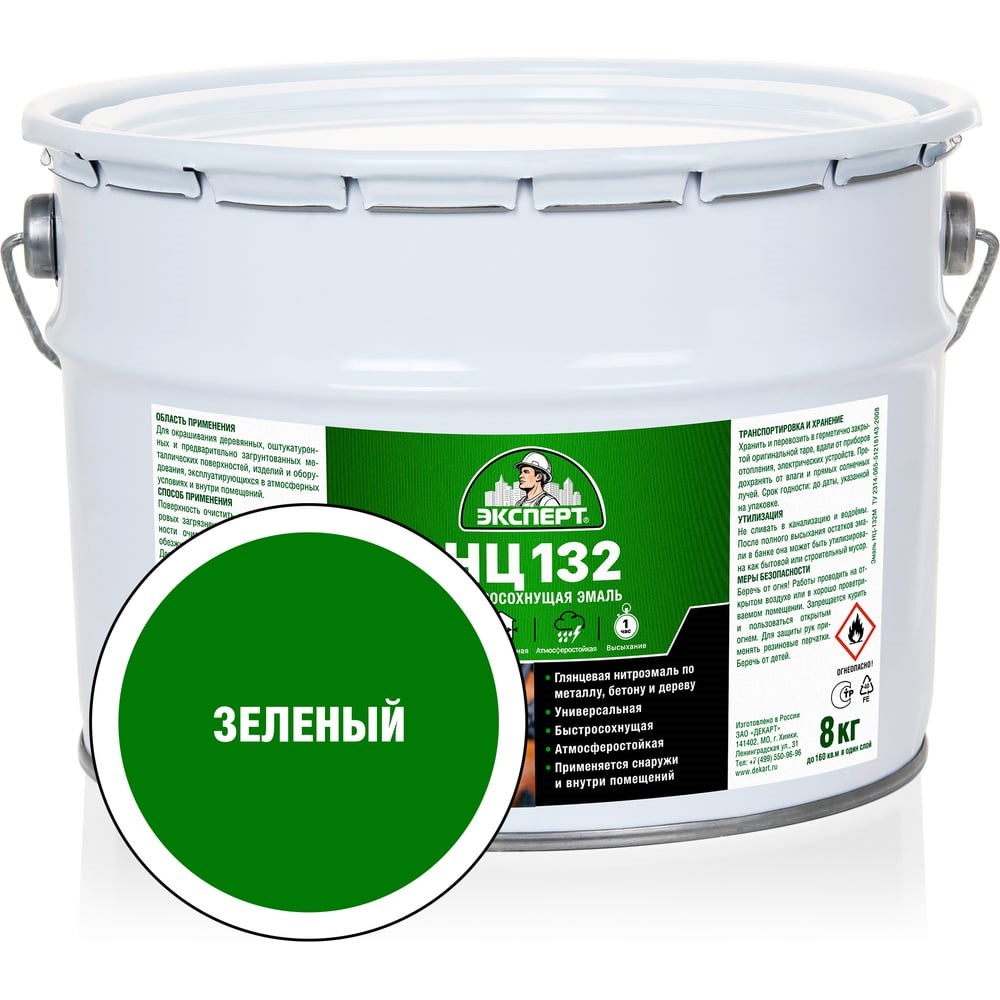 Эмаль Эксперт НЦ-132 зеленая, 8 кг 22612 применяется для окрашивания деревянных, оштукатуренных и металлических поверхностей, изделий и оборудования снаружи и внутри помещений. Благодаря составу, продукт образует атмосферостойкое, глянцевое покрытие. При температуре воздуха от 18 до 22 градусов время высыхания каждого слоя 1 час.