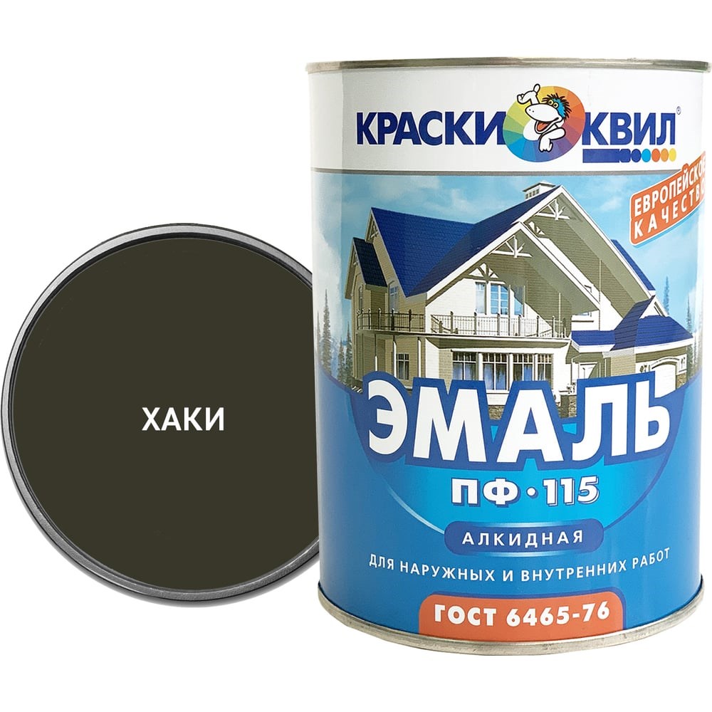 Эмаль Краски квил ПФ-115 (хаки; банка 0,9 кг) 4607023390420 обладает высоким глянцем и твердостью, покрытие устойчиво к воздействию воды, бытовых моющих средств и технических масел. Двухслойное покрытие эмали, нанесенное на подготовленную загрунтованную поверхность, в умеренном и холодном климате сохраняет защитные свойства в течение 4-х лет, декоративные - в течение 1 года. Внимание! Расход материала может изменяться в зависимости от типа и степени подготовленности поверхности, выбранного инструмента, условий нанесения.