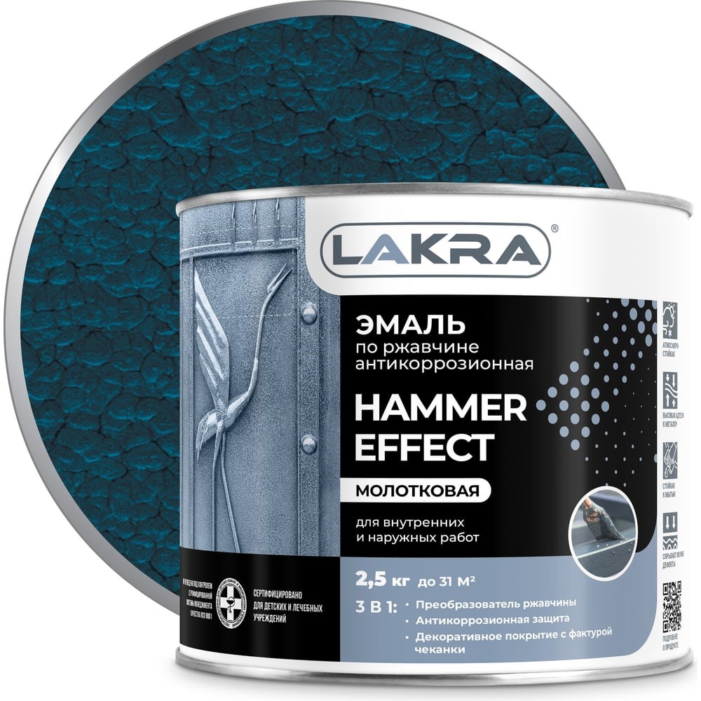 Эмаль с молотковым эффектом Лакра синяя, 2.5 кг Лк-00004946 используется для покраски изделий из дерева и металла с толщиной ржавчины до 0.1 мм. Готовое покрытие позволяет скрыть небольшие дефекты на поверхности и обладает защитно-декоративными свойствами.