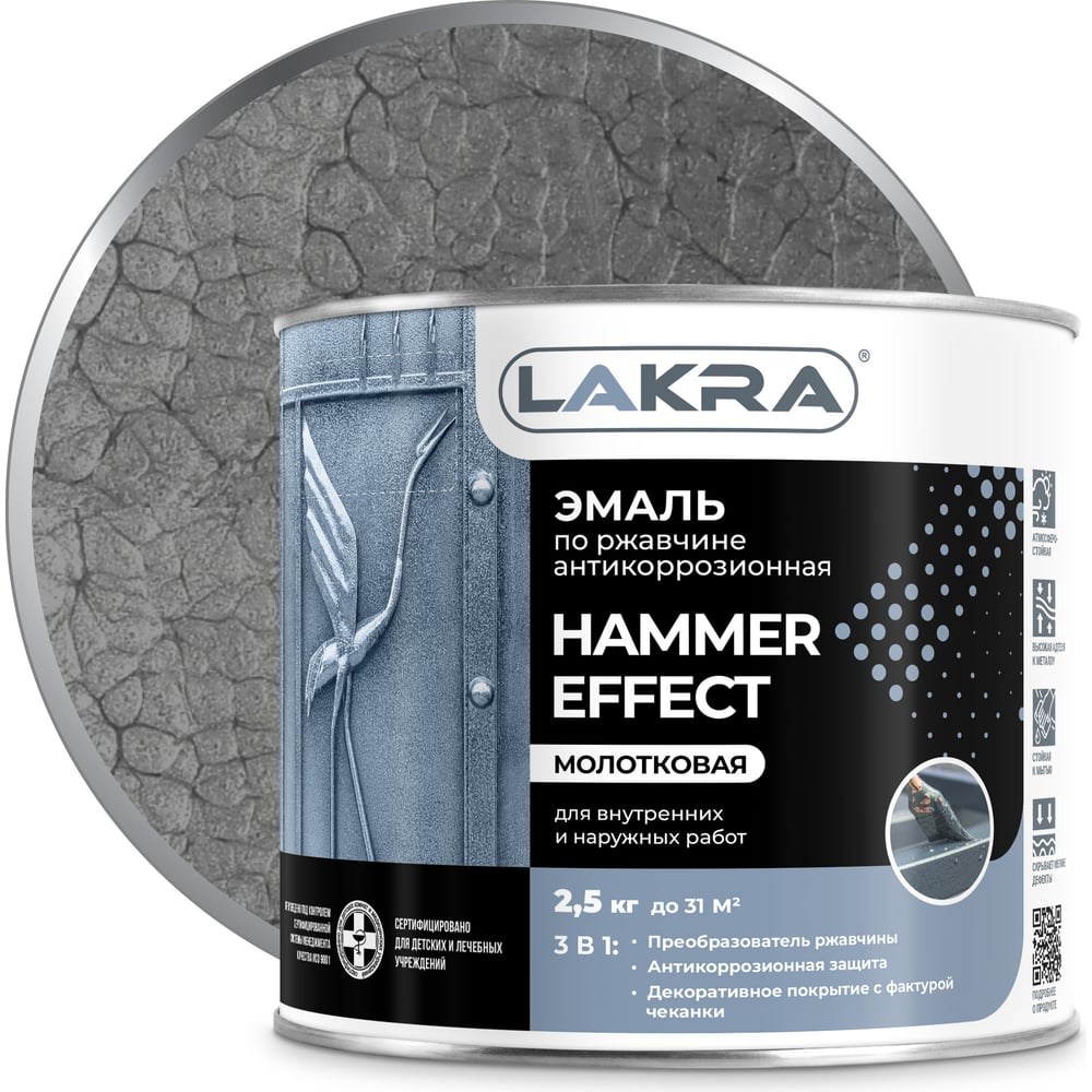 Эмаль с молотковым эффектом Лакра серая, 2.5 кг Лк-00004952 используется для покраски изделий из дерева и металла с толщиной ржавчины до 0.1 мм. Готовое покрытие позволяет скрыть небольшие дефекты на поверхности и обладает защитно-декоративными свойствами.