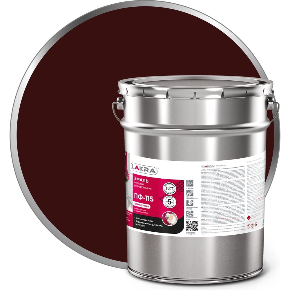 Эмаль Лакра ПФ-115 шоколадно-коричневая, 20 кг 90001010521 предназначена для осуществления отделочных работ и покраски изделий из дерева и металла. Отличается легким нанесением и высокой степенью укрывистости. Готовое покрытие характеризуется влагостойкостью и атмосферостойкостью.