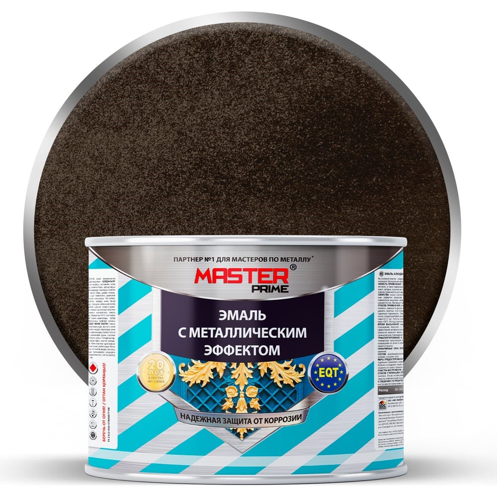 Высококачественная алкидная модифицированная эмаль с металлическим эффектом. Придает поверхности высокие защитные свойства и красивый внешний вид. Образует прочное долговечное покрытие. Обладает отличной адгезией к металлическим поверхностям. Наносится прямо на ржавчину, обладает высокой укрывистостью. Маскирует мелкие дефекты поверхности. Легко наносится, не требует предварительного грунтования, быстро высыхает. Предотвращает появление коррозии.При нанесении эмали по ржавчине важно в точности соблюдать рекомендации по времени межслойной сушки и учитывать, что в промежутке от 2-х часов до 7-ми суток после нанесения первого слоя, наносить последующие слои не допускается- оптимально – нанесение эмали распылителем, причем в несколько проходов, но за один раз, не прерываясь на межслойную сушку- для более эффективной антикоррозионной защиты рекомендуем использовать грунт по ржавчине MASTER PRIME (эмаль наносится поверх грунта ровно через 1 час или по истечении 7 суток, после окончательного отверждения грунта).При нанесении краскопультом эмаль следует разбавить ксилолом или сольвентом на 5-10 % от объема эмали. Второй слой следует наносить через 30-60 минут (но не позднее, чем через 2 часа).Время высыхания каждого слоя при температуре +20°С «от пыли» - 2 часа, второй слой следует наносить через 30-60 минут (но не позднее, чем через 2 часа). Окончательное отверждение покрытия - 5-7 суток в зависимости от влажности и условий отверждения.Расход 80-160 г/м² на однослойное покрытие
