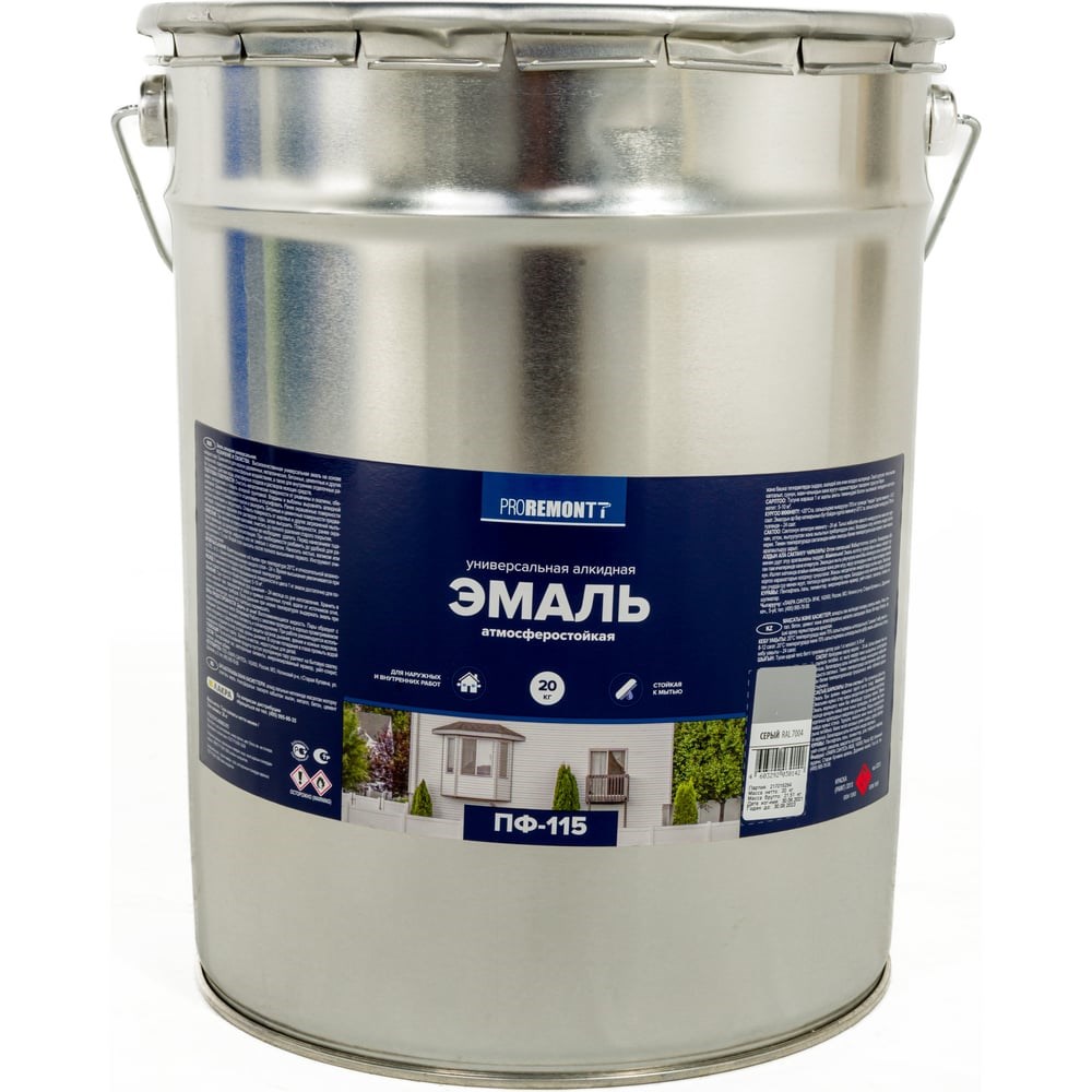 Эмаль PROREMONTT ПФ-115 серая RAL 7004, 20 кг Лк-00009823 предназначена для окрашивания поверхностей из дерева, бетона и металла. Подходит для отделочных работ в помещении. Легка в нанесении, отличается влагостойкостью, атмосферостойкостью и антикоррозийными свойствами.