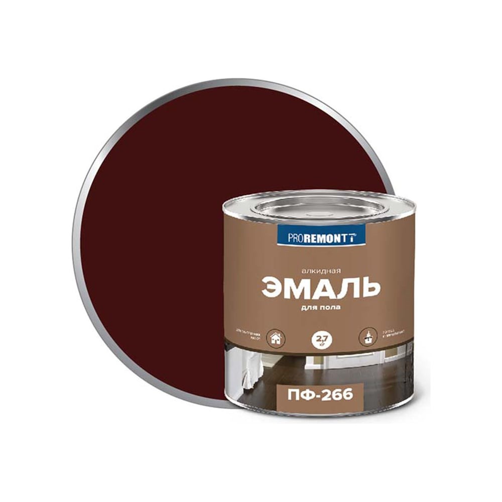 Эмаль PROREMONTT ПФ-266 красно-коричневая, 2.7 кг Лк-00004599 применяется для окраски деревянных, бетонных и металлических полов в помещении. Легка в нанесении, после высыхания устойчива к протиранию и влаге. Отличается износостойкостью, атмосферостойкостью и антикоррозийными свойствами.