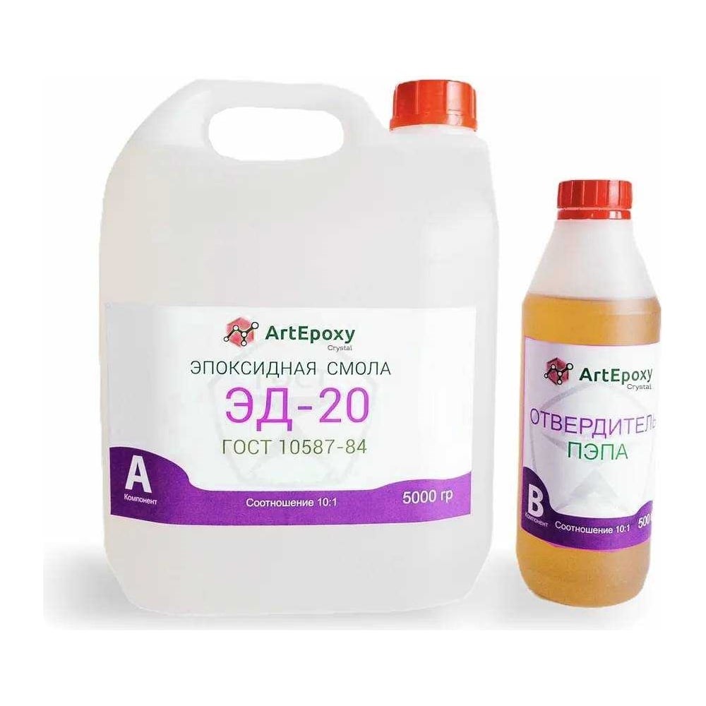 Эпоксидная смола ArtEpoxy ЭД-20 (5 кг; с отвердителем ПЭПА 500 гр) ВИ-21634 предназначена для ремонта различных изделий и вещей, используется в строительстве и радиоэлектронной промышленности. Состав подходит для авиамоделирования, изготовления деталей автомобиля (автотюнинг), ремонта и строительства лодок, яхт и самолетов. Продукт обладает хорошей адгезией к большинству оснований (металл, кирпич, камень, дерево, бетон).