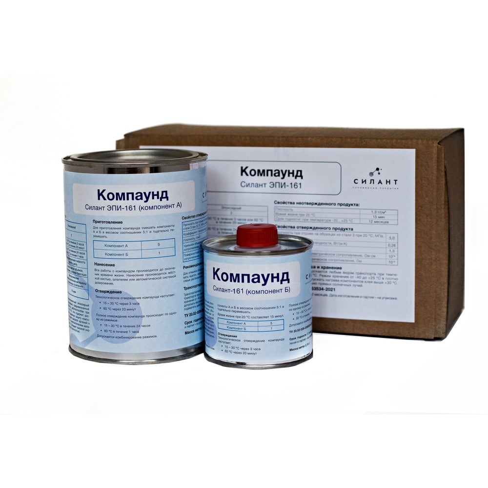 Эпоксидный компаунд Силант ЭПИ-161 КЭ2-161 предназначен для защиты (бескорпусной заливки) SMD компонентов, объёмов и изделий небольшого объёма. Состав быстро отверждается при комнатной температуре, обладает высокой твёрдостью, прочностью и адгезией к различным металлическим и неметаллическим материалам, в том числе стеклопластикам и цветным металлам. Компаунд непрозрачен, белого цвета, стоек к влаге, разбавленным кислотам, растворам солей; умеренно стоек к УФ, ГСМ, органическим растворителям.