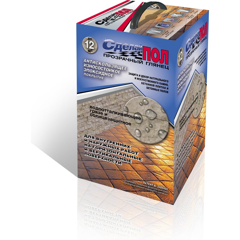 Эпоксидное износостойкое покрытие для бетонных и минеральных оснований, натурального и искусственного камня, для «запечатки» полимерных покрытий в качестве финишного покрытия. Предназначено для нанесения на минеральные поверхности (бетон, бетонная плитка, камень, искусственный камень и т.д.), эксплуатируемые в атмосферных условиях и внутри помещений, нанесение возможно как на горизонтальные так и вертикальные поверхности, в том числе нанесение на пол. Внешний вид пленки: бесцветный глянцевый, гладкий. Методы нанесения: кисть, валик, а также пневматическое или безвоздушное распыление. Нанесение при t от +5 до +35С и относительной влажности воздуха не более 80%.