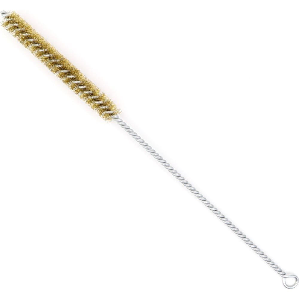 Щетка-ерш применяется для очистки цилиндрических поверхностей из нержавеющий сталей, алюминия, отверстий, прочистки трубок, шлангов, удаления заусенцев и подобных работ. Исполнение: с хвостовиком + кольцо Назначение: зачистка/Очистка Обрабатываемый материал: нержавеющая сталь/алюминий Диаметр D, Д (мм): 15 Размер A, E (мм): 100 Посадочный диаметр B, G, F (мм): хвостовик с кольцом Материал ворса щетки: сталь нержавеющая Диаметр ворса (мм): 0.15 Тип (форма) ворса: гофрированный (волнистый)