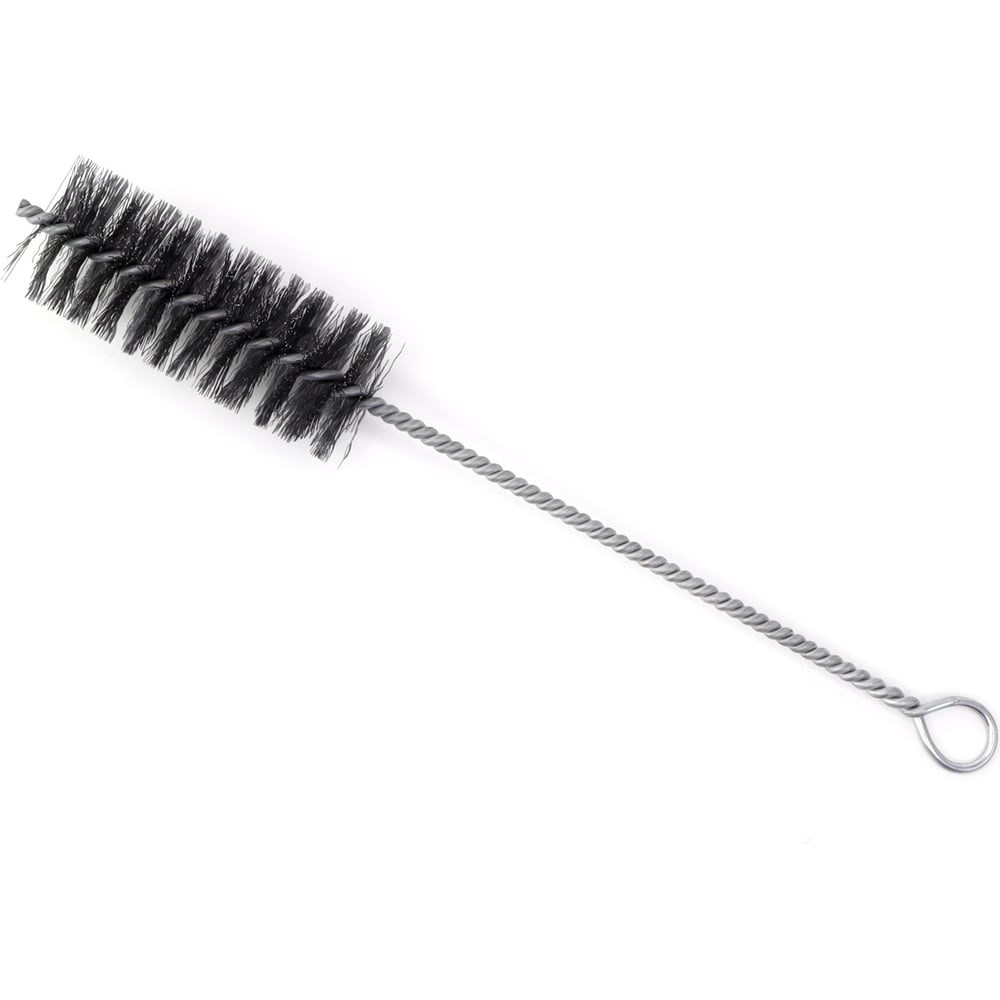 Щетка-ерш применяется для зачистки отверстий, прочистки твердотопливных, жидкотопливных, газовых котлов от нагара, очистки трубок теплообменников и других подобных труднодоступных мест. Исполнение: с хвостовиком + кольцо Назначение: Очистка Обрабатываемый материал: Металл Диаметр D, Д (мм): 40 Размер A, E (мм): 100 Размер T, S (мм): 17 Посадочный диаметр B, G, F (мм): хвостовик д5 с кольцом Материал ворса щетки: сталь черная Диаметр ворса (мм): 0,30 Тип (форма) ворса: гофрированный (волнистый)
