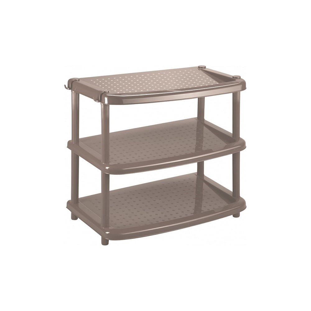Этажерка для обуви Бытпласт Паола 3 полки 490х310х545 мм коричневый 431240314 предназначена для аккуратного хранения. Легко моется от следов грязной обуви и не притягивает излишнюю пыль, поэтому отличается практичностью. Относится к открытому типу, что обеспечивает хорошую вентиляцию. Этажерка имеет несколько секций, благодаря чему вмещает много вещей.