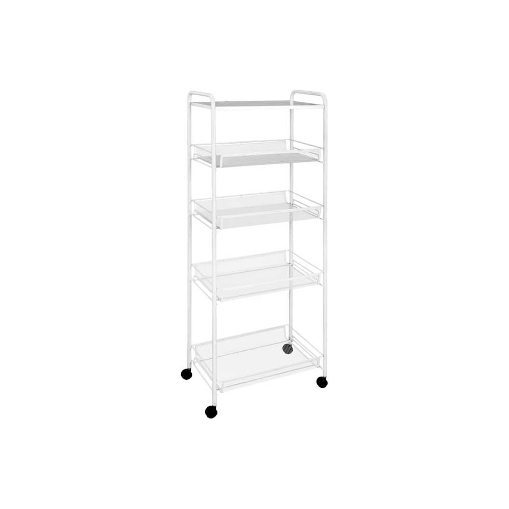 Этажерка-стеллаж для хранения ЗМИ Ладья 35КС 4 полки с колёсами цвет белый Э 410 Б предназначена для хранения различных предметов.Благодаря универсальности на ее полках можно разместить аксессуары, одежду, бытовую химию и другие вещи.Простой монтаж изделия экономит время и силы.Этажерка имеет открытую конструкцию, за счет чего легко чистится, благодаря чему не требует сложного ухода.