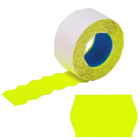 Цвет - желтый, форма - "волна". Один рулон содержит 800 этикеток размером 26x12 мм. 5 рулонов в комплекте. Поставляются в термоусадочной пленке.