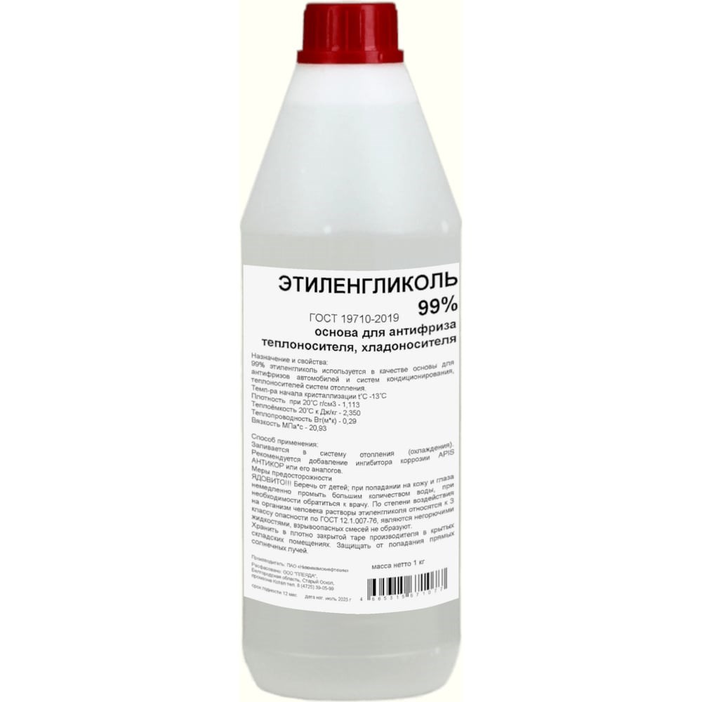 Водные растворы этиленгликоля широко применяются в автономных системах отопления, охлаждения, вентиляции и промышленного кондиционирования в качестве теплохладоносителя. ГОСТ 19710-2019. Температура начала кристаллизации — -13˚С Плотность при 20˚С — 1,113 г/см3 Теплоёмкость 20˚С — 2,350 кДж/кг Теплопроводность — 0,29 Втм*к Вязкость — 20,93 МПа*с