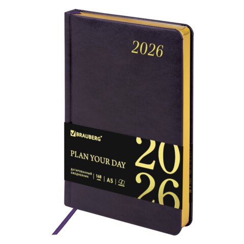 Внутренний блок включает 168 листов тонированной бумаги плотностью 70 г/м2. Каждая страничка имеет перфорированный угол. Благодаря стандартному формату А5 (138х213 мм) ежедневник удобно использовать как в офисе, так и на выездных деловых встречах. Твердая обложка стилизована под кожу рептилии благородного темно-фиолетового цвета. Подходит для горячего тиснения. Срез ежедневника фольгирован золотой фольгой, что придает ему особый шарм. Дополнением является закладка-ляссе, с помощью которой при необходимости можно быстро открыть ежедневник на нужной странице.