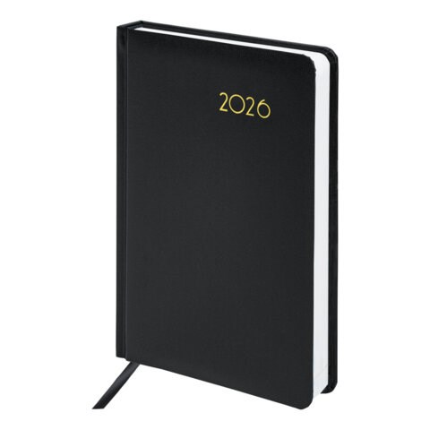 Ежедневник датированный 2026, А5, 138x213 мм, BRAUBERG "Select", балакрон, черный, 117086