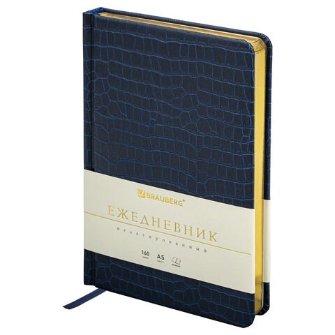 Ежедневник недатированный А5 (138х213 мм) BRAUBERG "Comodo", под кожу, 160 л., темно-синий, 113500