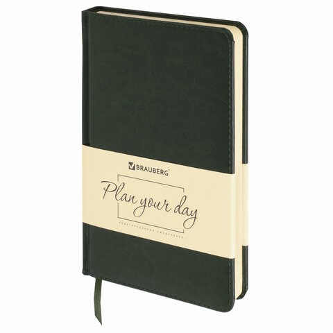 Ежедневник недатированный А5 138х213 мм BRAUBERG "Imperial" под кожу, 160 л., темно-зеленый, 111855