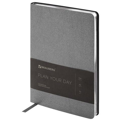 Ежедневник недатированный А5 138х213 мм BRAUBERG "Metallic", под кожу, 136 л., гибкий, серебряный, 113377