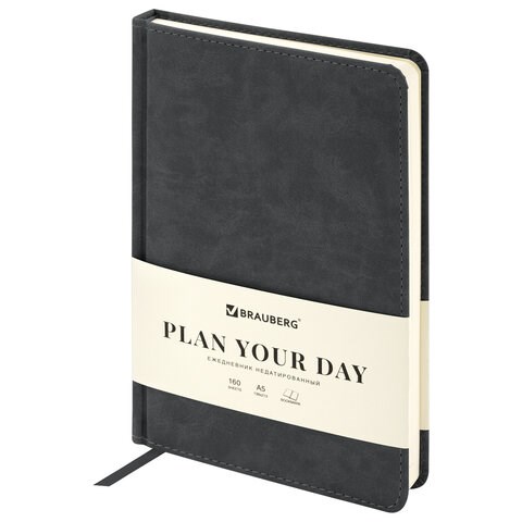 Ежедневник недатированный А5 138х213 мм BRAUBERG "Status" под кожу, 160 л., черный, 113361