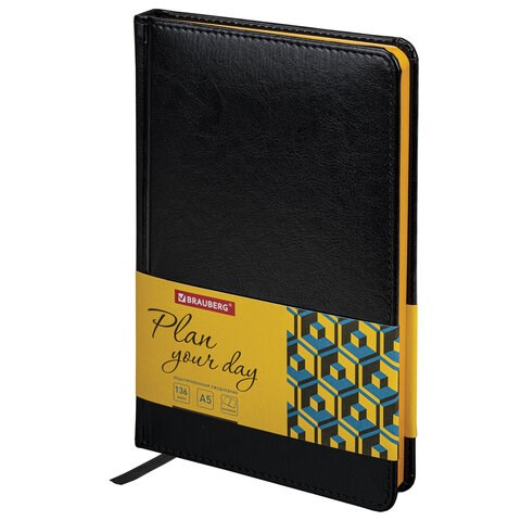 Ежедневник недатированный А5 138x213 мм BRAUBERG "Rainbow", под кожу, 136 л., черный/желтый, 113497