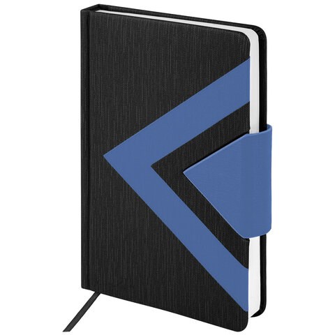 Внутренний блок включает 160 листов белой бумаги плотностью 70 г/м2. Каждая страничка имеет перфорированный угол. Благодаря стандартному формату А5 (138x213 мм) ежедневник удобно использовать как в офисе, так и на выездных деловых встречах. Твердая обложка, стилизованная под гладкую кожу, подходит для горячего тиснения. Снабжен магнитной застежкой, благодаря чему ежедневник не откроется в сумке или портфеле. Форзац ежедневника представлен картами мира и России. Дополнением является закладка-ляссе, с помощью которой при необходимости можно быстро открыть ежедневник на нужной странице. Помимо прочего ежедневник снабжен справочным материалом. Выполнен в комбинации из двух цветов - синий и черный.