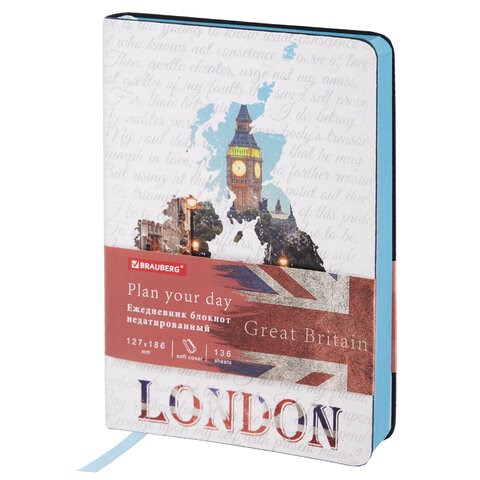 Ежедневник недатированный B6 (127х186 мм), BRAUBERG VISTA, под кожу, гибкий, 136 л., "Great Britain", 112108