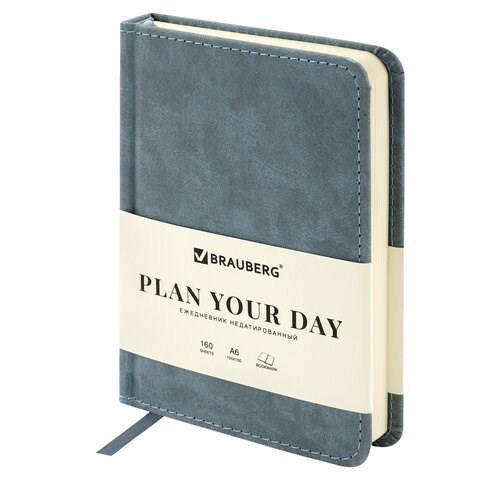 Ежедневник недатированный МАЛЫЙ 100х150 мм А6 BRAUBERG "Status", под кожу, 160 л., серо-голубой, 113369