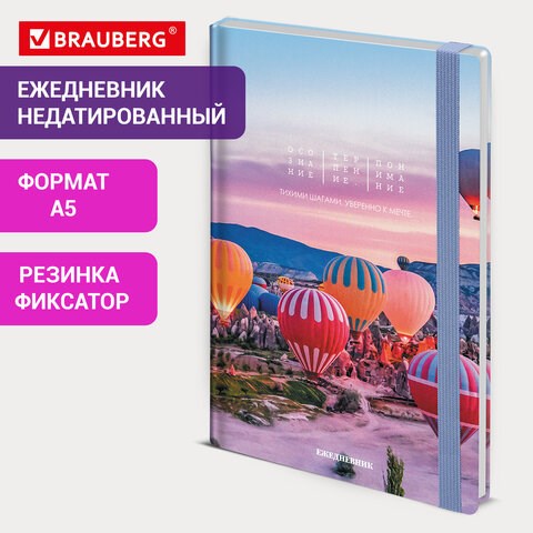 Ежедневник недатированный с резинкой А5 145х203 мм, BRAUBERG, твердый, 160 л., "Cappadocia", 116306