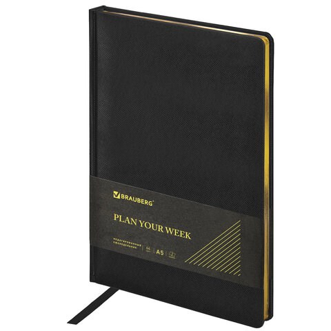 Еженедельник недатированный А5, 145х215 мм, BRAUBERG "Iguana", под кожу, 64 л., черный, 114478