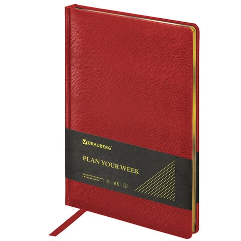 Еженедельник недатированный А5, 145х215 мм, BRAUBERG "Iguana", под кожу, 64 л., красный, 114477