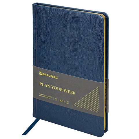 Еженедельник недатированный А5, 145х215 мм, BRAUBERG "Iguana", под кожу, 64 л., синий, 114476
