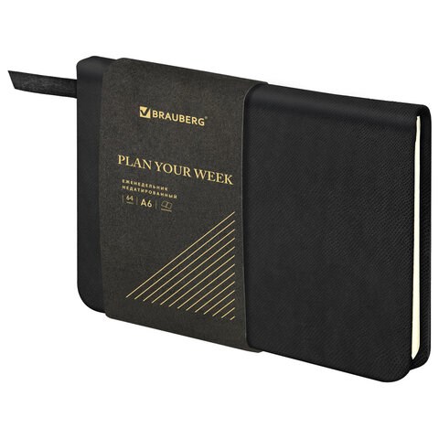 Еженедельник недатированный МАЛЫЙ ФОРМАТ 95х155 мм, А6, BRAUBERG "Iguana", под кожу, 64 л., черный, 114480