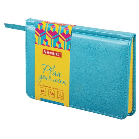 Еженедельник недатированный МАЛЫЙ ФОРМАТ 95х155 мм А6 BRAUBERG "Rainbow", под кожу, 64 л., бирюзовый, 114483