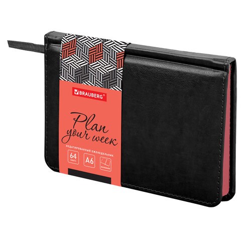 Еженедельник недатированный МАЛЫЙ ФОРМАТ 95х155 мм А6 BRAUBERG "Rainbow", под кожу, 64 л., черный, 114485