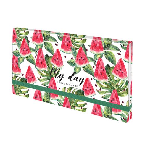 Еженедельник недатированный с резинкой (171х93 мм), BRAUBERG, твердый, УФ-ЛАК, 64 л., "Watermelon", 114577