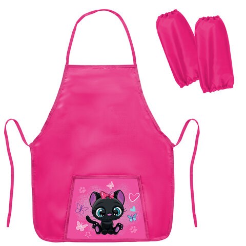 Фартук с нарукавниками для уроков труда ПИФАГОР, 1 карман, 46x54 см, "Black kitten", 273761