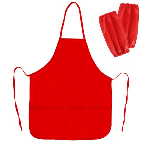 Фартук с нарукавниками для уроков труда ПИФАГОР, 3 кармана, стандартный размер, 44x55 см, красный, 273753