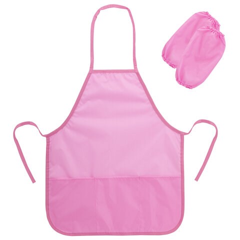 Фартук с нарукавниками для уроков труда ПИФАГОР, 3 кармана, стандартный размер, 44x55 см, розовый, 273757