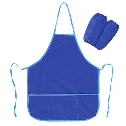 Фартук с нарукавниками для уроков труда ПИФАГОР, 3 кармана, стандартный размер, 44x55 см, синий, 273754